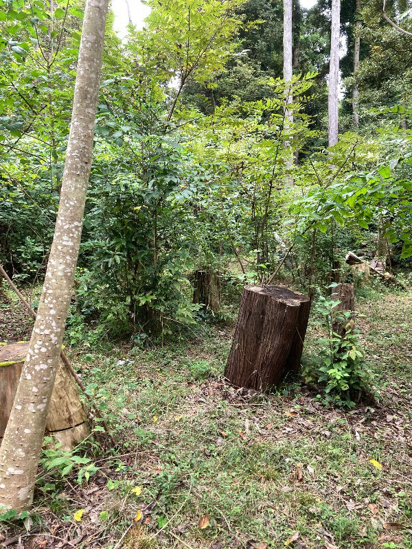新しい木材だったら美味しい丸洞がいっぱいできたんだけれど、ラオス式(根っこ付き)が主流だからね。