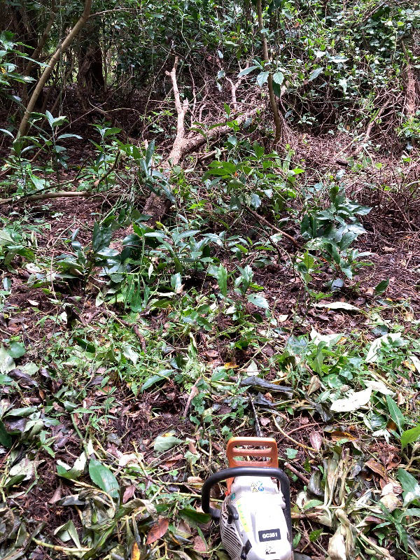 週末で雨が降らなければ筋トレを兼ねて森の整備をする。
