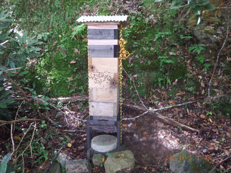 日本ミツバチは森林組合の友人から2012年巣蜜をいただいたのと山荘の薪小屋に日本ミツバチがたくさん来ていたので何か自分でも知らないうちにやっていました。宜しくお...