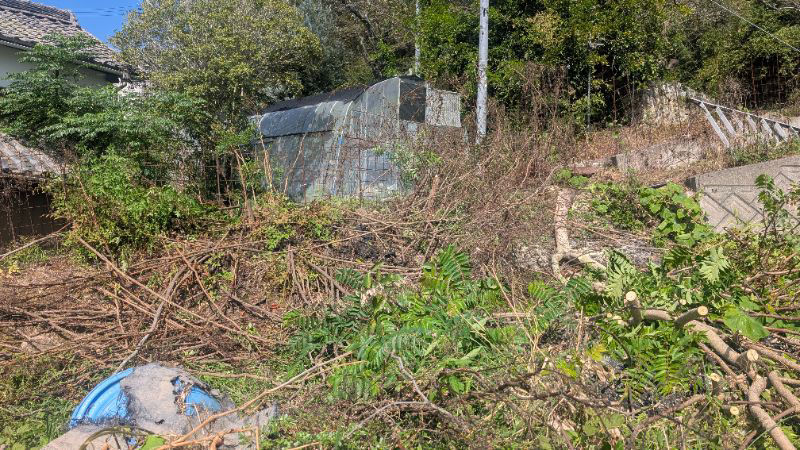 南天は21v電動鋏で遣っ付けました、漆もどきは手首ぐらいの太さなので こがるちゃんが大活躍。