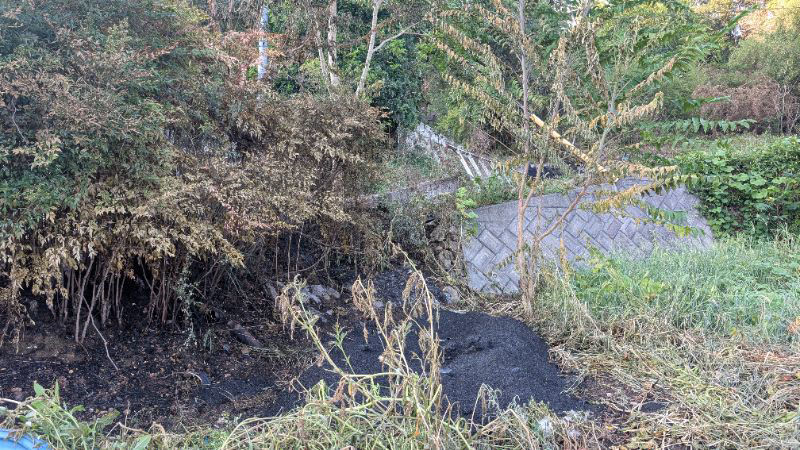先日畑で草焼きをしていた火が谷川の土手に移りもう少しで裏山迄焼く処でした。