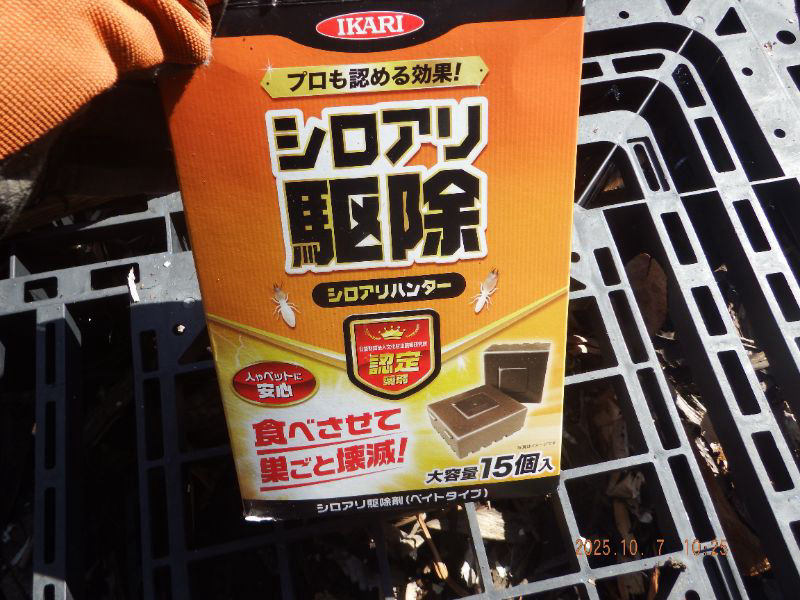 つよよさん こんにちは ハイ 白アリ予防は大事ですね。白アリが居る場所で効果有を確認して居るので、薪を置いて居る所とか、枕木の根元とかに埋め込んでいますね。皮を、剥いで置くと、白アリは付きにくいと言いますが、全部剥ぐのは大変ですからね。コメント有難う御座いました。