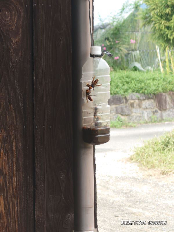 庭先の無王巣箱にスズメバチが多数来襲してたので、ペットボトルトラップを仕掛けました