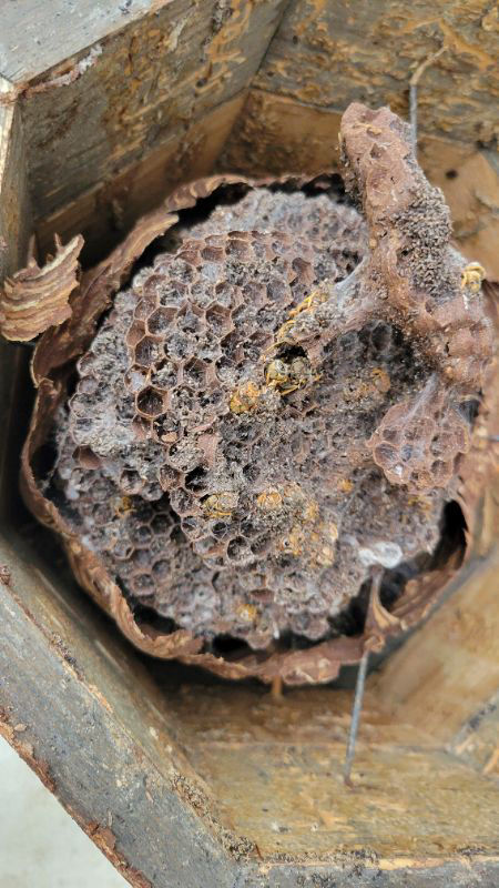 今回はうちの八角巣箱に自然入居していたキイロスズメバチがいつの間にか居なくなりもぬけの殻になっていたので解体した所スムシが寄生していたので記録として日誌にupします。