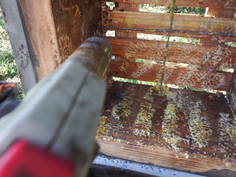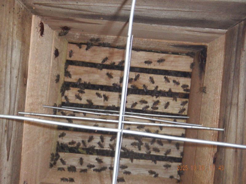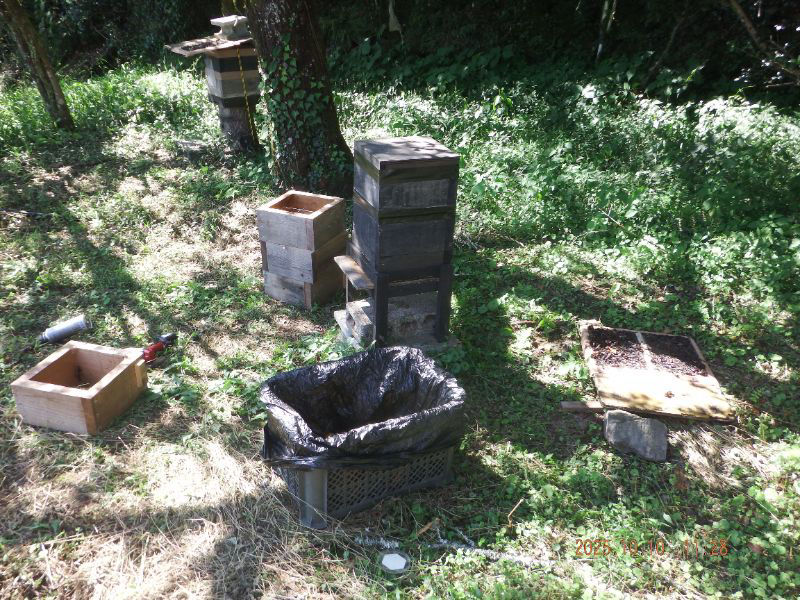 終わりましたね。4段巣箱を外して来年の待ち受け巣箱にしましたね。