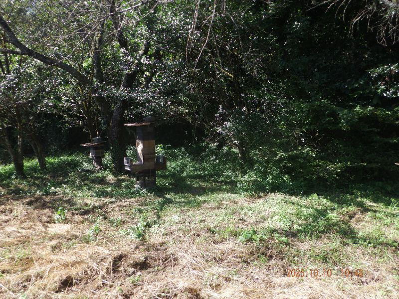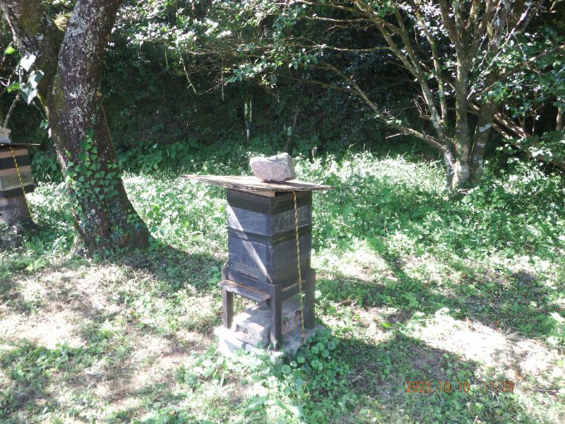3km先の裏の蜂置き場ですね。角洞の下に4段継箱をして居ますね。草刈り中ですね。