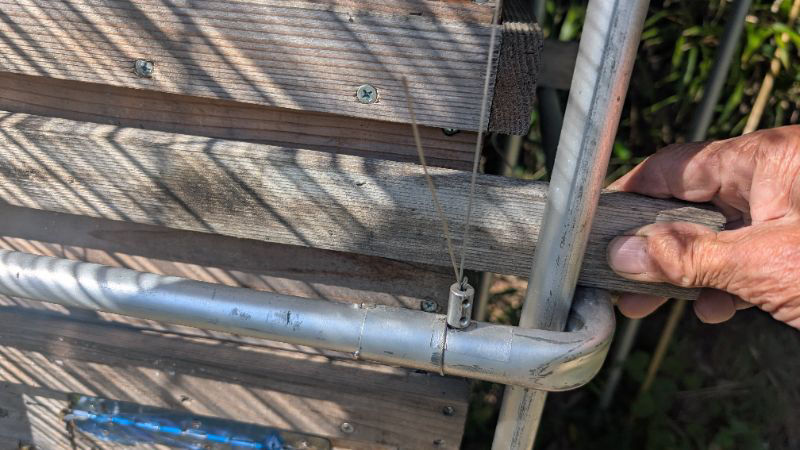 桟木を入れ鉢巻に引っ掛け持ち上げます。