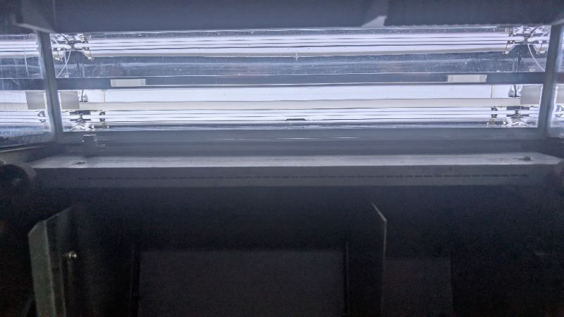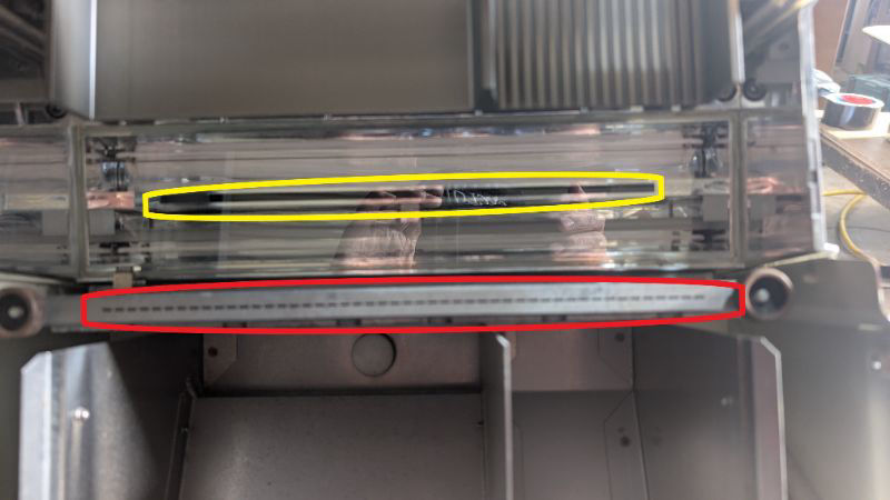 黄色 カメラ 赤 カメラで捉えた不良米を弾くエアーエジェクターです。
