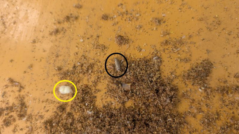 黄色〇 サナギ 黒〇 スムシの親分 3匹いました。 子分は4匹