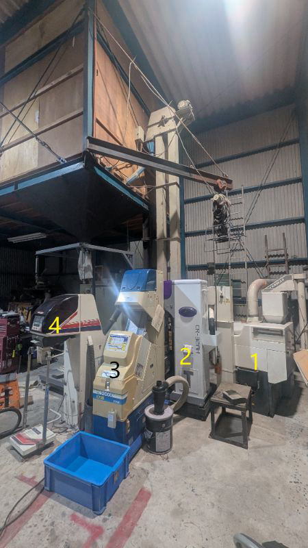 1 5吋揺動籾摺り機 2 米選機 3 色彩選別機 4 計量米選機