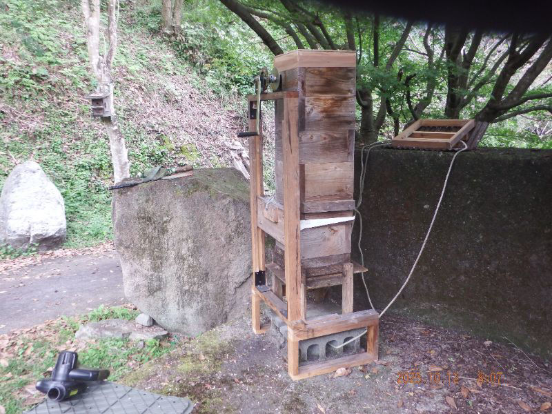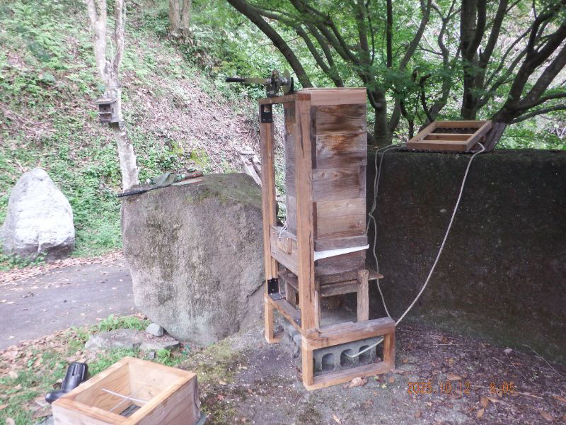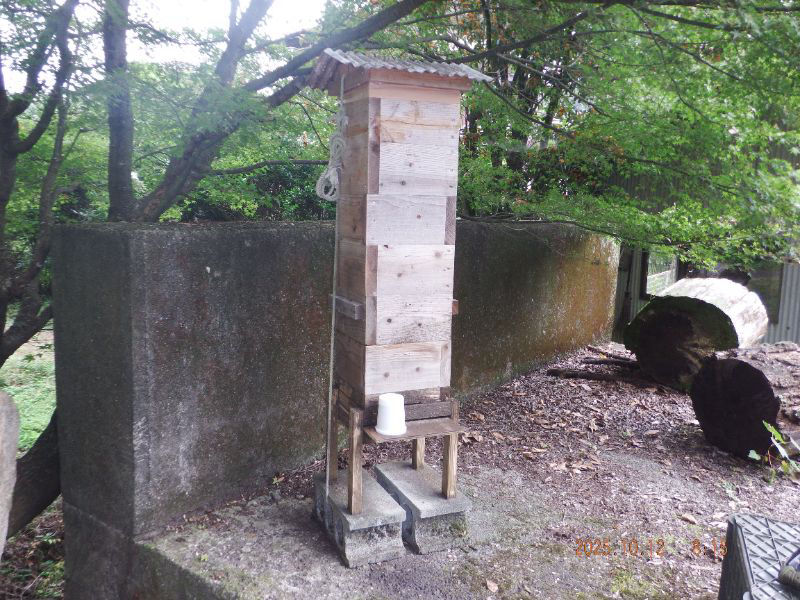 令和7年10月12日 日曜日 大分山荘にて:No.6自然入居群に1段継箱して、6段飼育にしましたね。此れで冬越し出来ますね。自分は空間が有る方が好きですね。