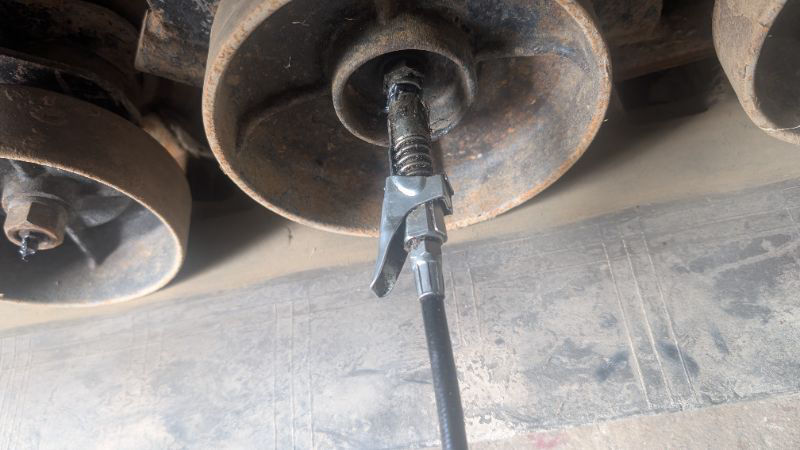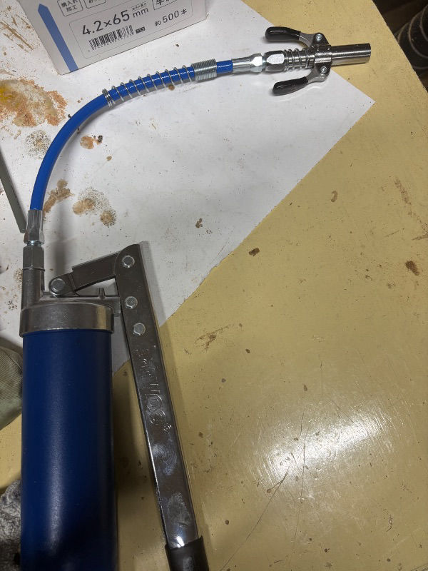 スッポン❓グリスガンです。 このノズルは喰いついたら離れないのでグリースがこぼれません。