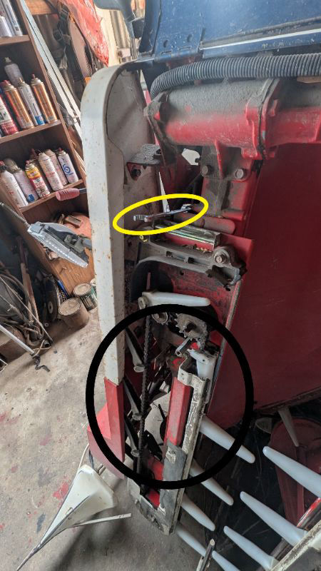 黒色 引き起こしチェーン 黄色 チェーンテンショナーを調整
