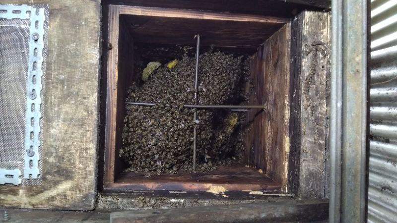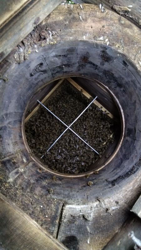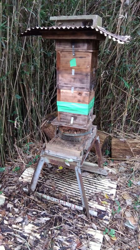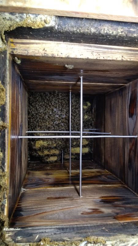 ⇩ 同柿木群の内検。4月7日自主入居、2段しか営巣が見えない。