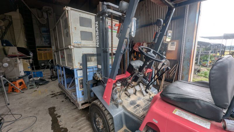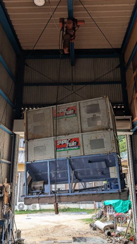 昨日組み立てたコンテナを農舎に運びます。