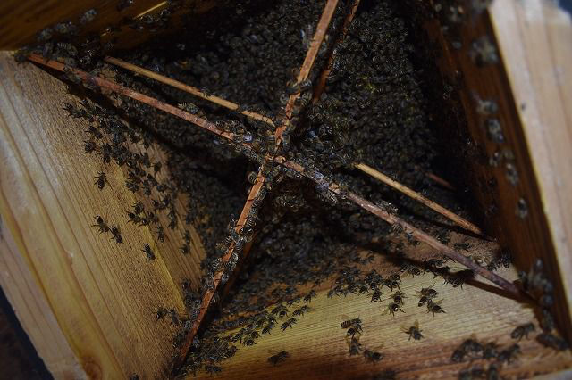 日本ミツバチは森林組合の友人から2012年巣蜜をいただいたのと山荘の薪小屋に日本ミツバチがたくさん来ていたので何か自分でも知らないうちにやっていました。宜しくお...