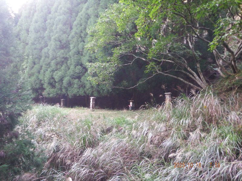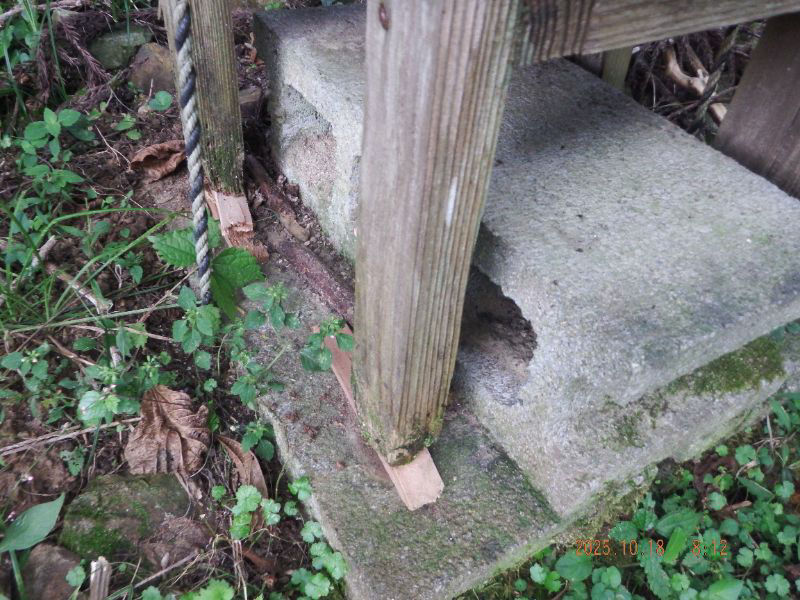 少し左に傾いて居ますので、りんぎを敷きますね。9年前の土石流で4年間足元が埋まっていましたからね。