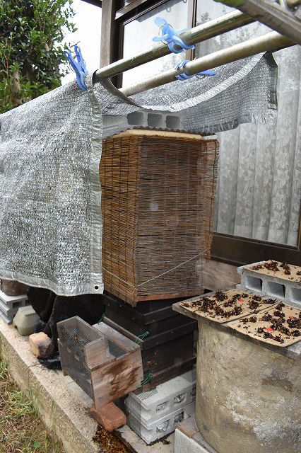 そう言えば時騒ぎを一ヶ月程見かけていません。夏分蜂したのか?それとも女王蜂の急死か?いずれにせよ無王群になっていて、スムシの楽園状態でしょうね・・・。
