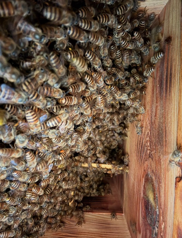 西陽の遮光不足による偏り巣を是正するため巣箱を180度転回して約2ヶ月が経ちました。