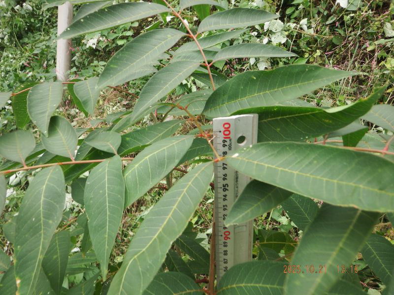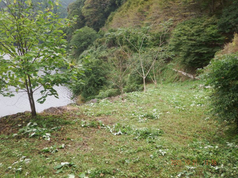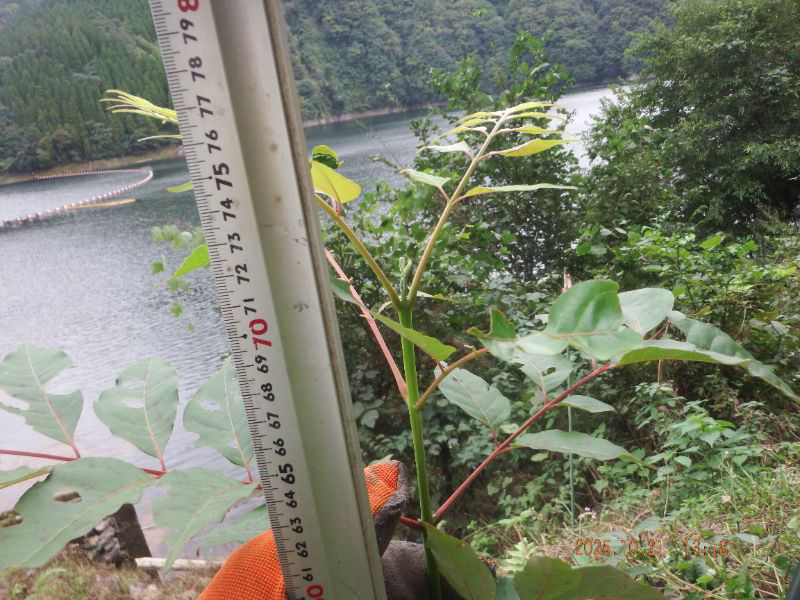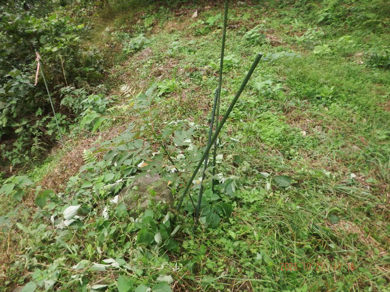 令和7年10月21日 火曜日 大分山荘蜜源樹の森:5回目の草刈りをして、苗の寸法(高さ)を測りましたね。