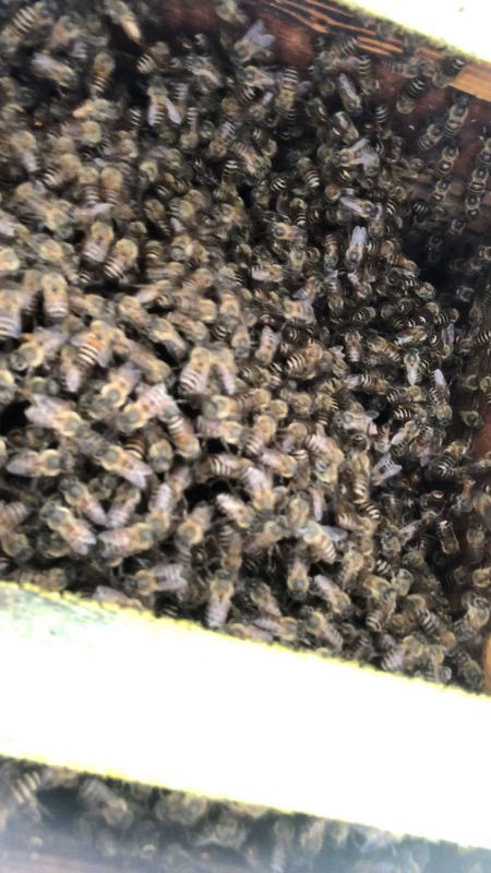 重箱の外壁に多く出たので刷毛で蜂たちを巣門の方へ誘導し逃げないようにしました。また、今回白いツナギを着忘れ腹部の隙間から蜂が入って爪で引っかかれました。毒針じゃなくて良かったです。b群れを蜜切りした時よりも蜜は溜まってそうでしたが、やはり昨年よりも蜜が少なかったです。祖父と一緒に遠心分離機を使いおよそ1.5L程採蜜できました。