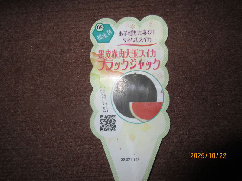 品札をよく見返してみると、なんと種なしスイカでした。ブラックジャックと言う品種のようで食べてみても甘さも他のものと変わらず、種も無く食べやすかったことを思い出しました。