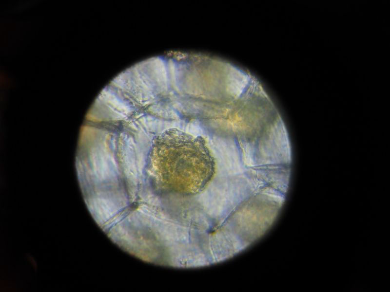 キンリョウヘンの根の細胞にいる木材腐朽菌↓