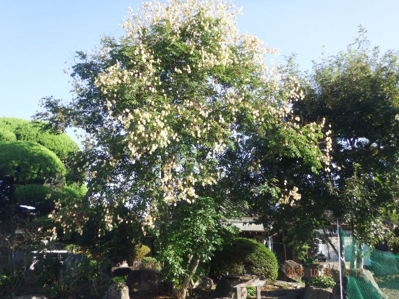 庭に植えているケンポナシですね。今年から咲いて居ますね。