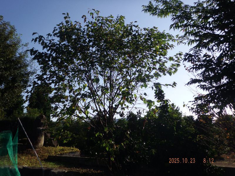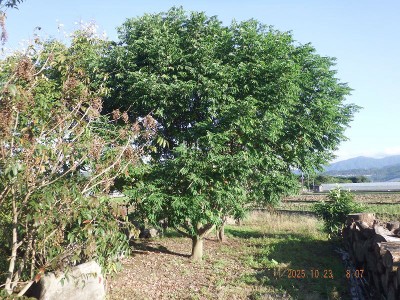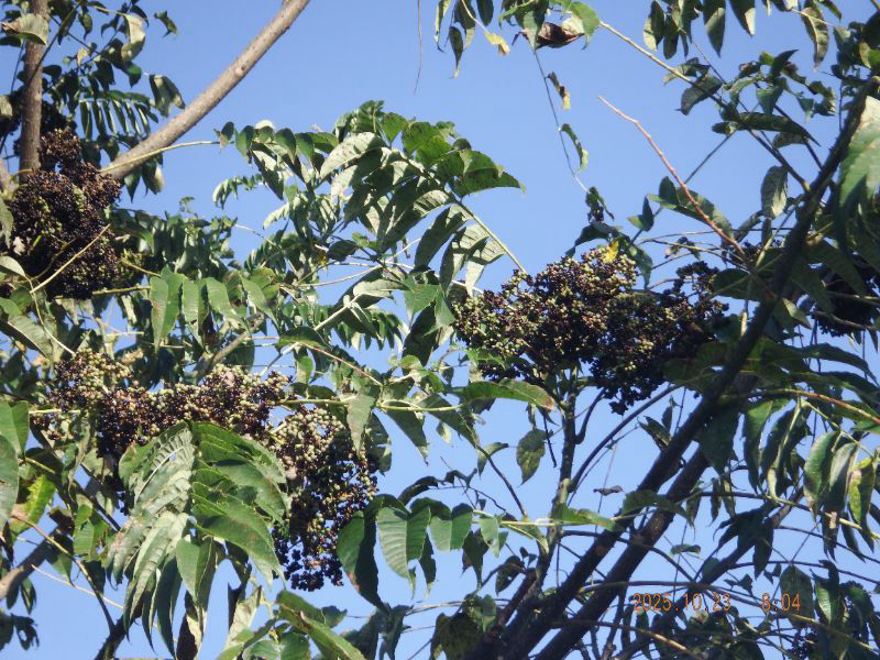 No.1カラスザンショウですね。実験木ですね。雌木で、8月14日ごろに咲く貴重な樹木ですね。種子が黒くなって来ましたね。