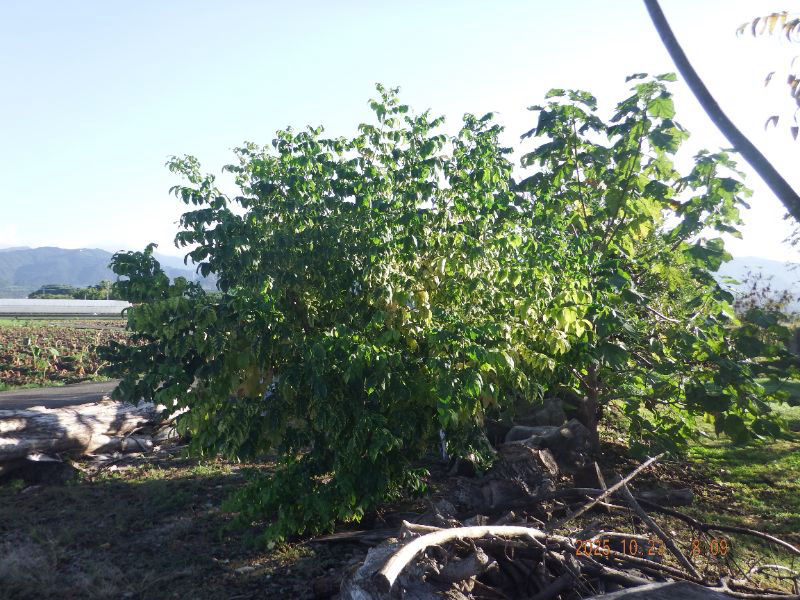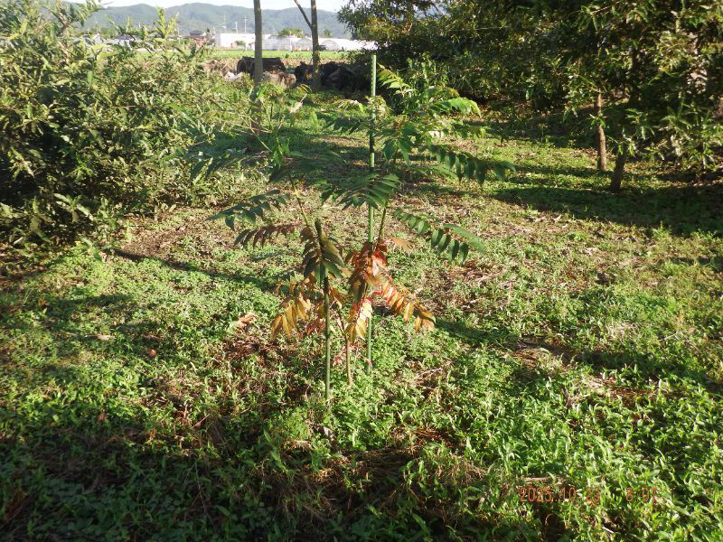 昨年苗を植えた、桐の木ですね。根元は200mmくらい有りますね。
