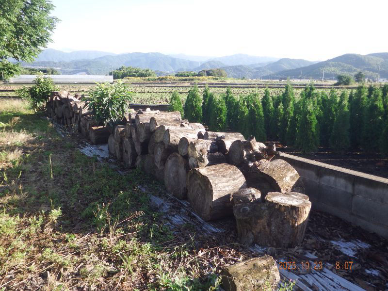 大きな欅4本分の丸太ですね。薪にしないと腐れが少しずつ有りますね。