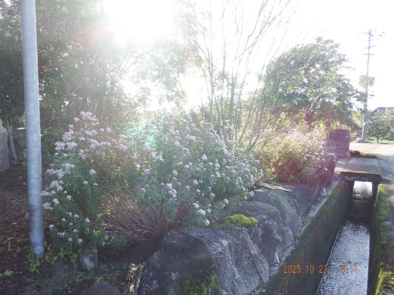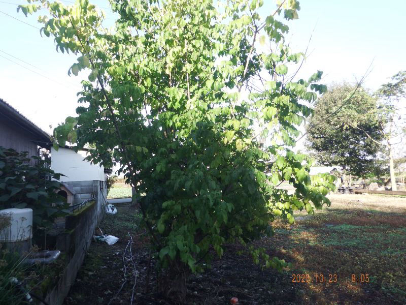 家庭菜園に植えている、ケンポナシですね。今年から咲いて居ますね。