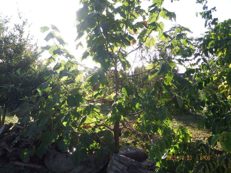 家庭菜園に植えている、ビービーツリーの雌雄同株ですね。