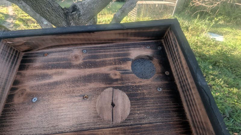 くり抜いた破片で塞ぎます。 ごく僅か換気しています。