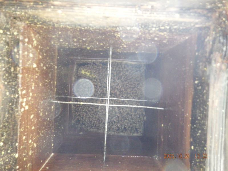 5段目まで蜂が居ますね。6段目の巣落ち防止棒が見えていますね。