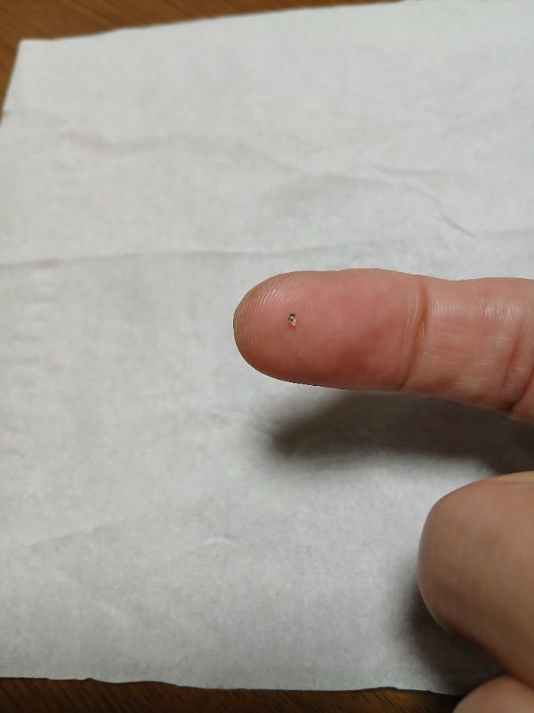 おそらく私が家に入るまでの間に、ジャージのズボンにアタックして来た模様。運良く生地がダボついていた所に刺したので、直接的には気付かなかったようだ(針の刺さりが甘かった状態)