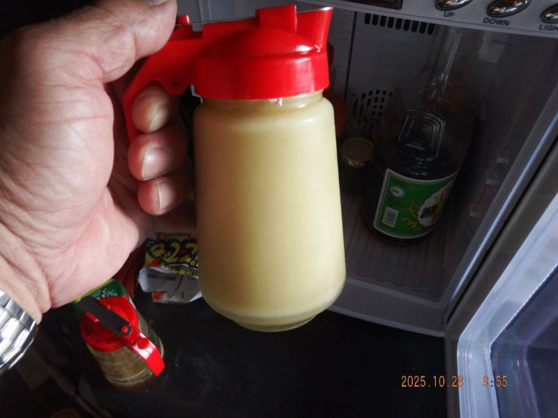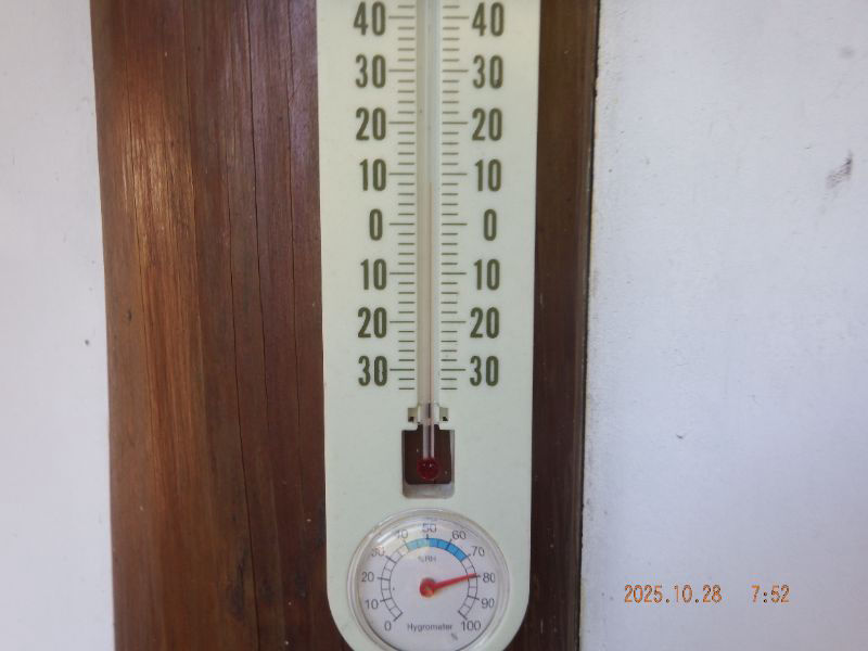 令和7年10月28日 火曜日 大分山荘にて:No.2冬越し群の蜂蜜を冷蔵庫で保存していたので、結晶化して居ますので、温蔵庫に入れましたね。蜂の巣湖は水滴が上がっ
