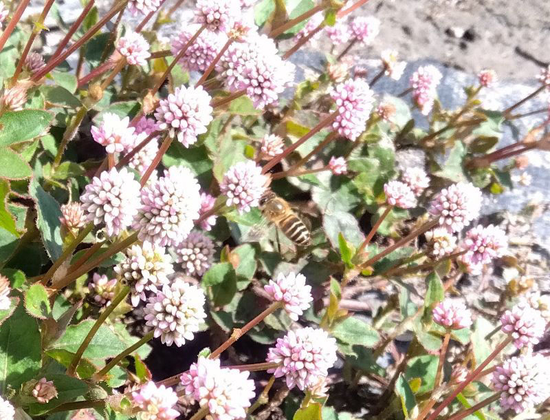 ひめつるそばポリゴナムへの日本みつばち来訪ナイスショットです。