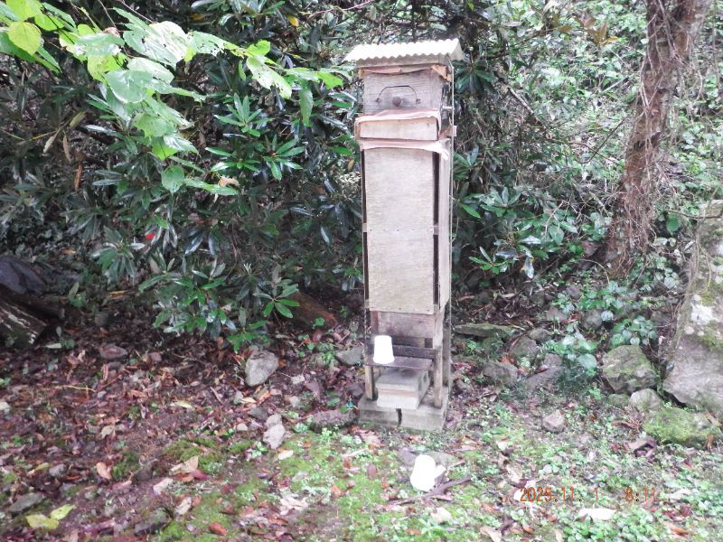 令和7年11月1日 土曜日 大分山荘にて:No.6,No.1自然入居群(巣版が有る待ち受け巣箱入居)に給餌をしましたね。