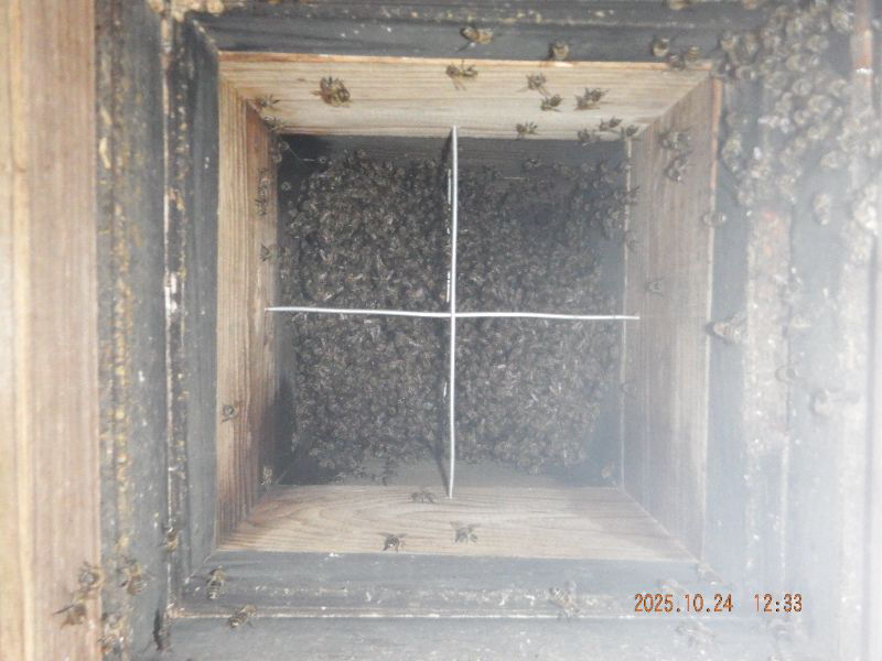 No.1自然入居群ですね。4月8日:4段巣版が有る待ち受け巣箱入居群ですね。夏分蜂して居るので、蜂数は少なかったのですが、やっと盛り返して来ましたね。