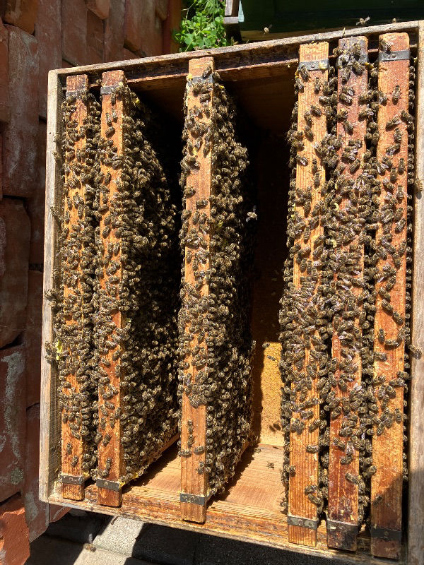 内検しました。今は巣枠9枚で7枚ぐらいに両面びっしり。まだまだ減ってきている感じはありません。