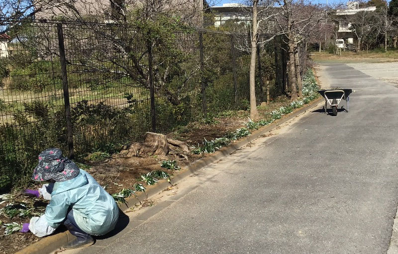 入所者や利用者が和むようにと広い緑地が設けられていますが、限られた人員での管理にはなかなか苦慮しているようです。園芸担当(カミさん)が手の届く範囲での草取りや花植えを買って(勝ってに?)出て、楽しみながら手入れを手伝っています。