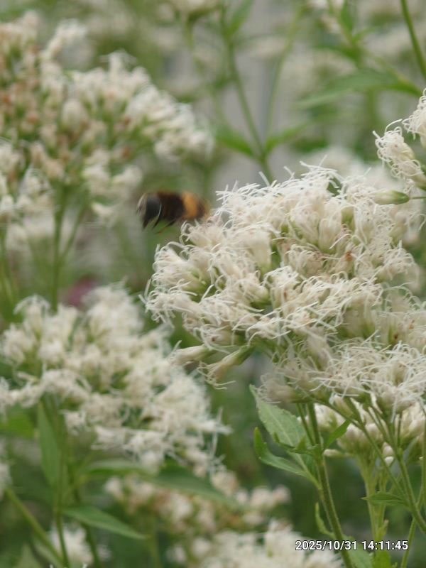 我が家の蜜蜂は来ておらず、花蜂が来てます