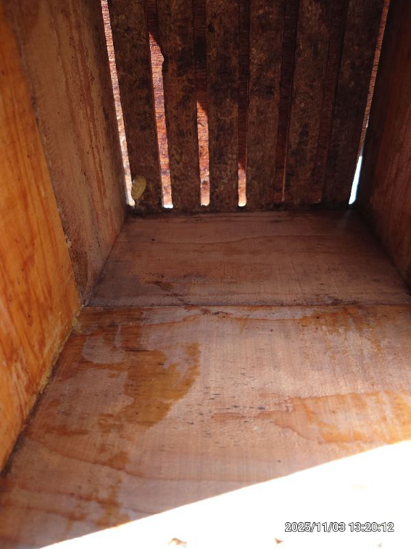 10/15に入居してた極小群は、本体では無かったようで、小指ほどの巣板残して、すぐ居なくなってました