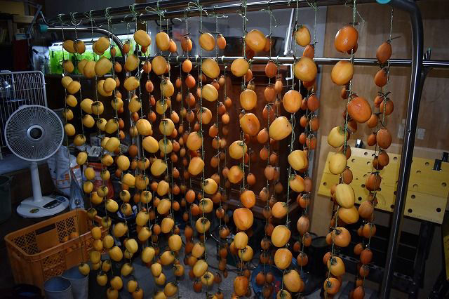 我が家の山の神は、西条柿の干し柿づくりに頑張っています。柿の収穫はジィジの役割です。