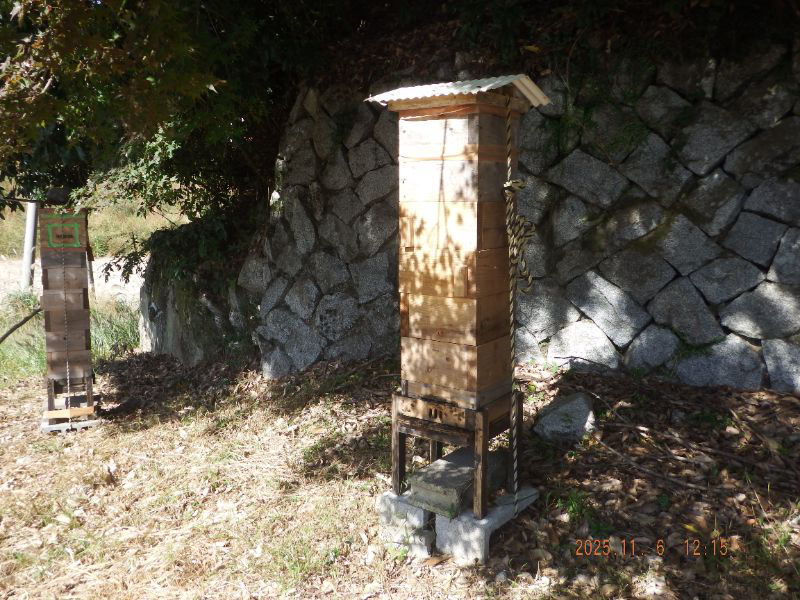 日本ミツバチは森林組合の友人から2012年巣蜜をいただいたのと山荘の薪小屋に日本ミツバチがたくさん来ていたので何か自分でも知らないうちにやっていました。宜しくお...