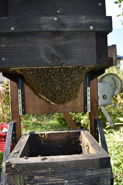 2号群より増群増巣がすこし少ないですね・・・。1段継箱して1段カットしました。貯蜜は多い方でした。
