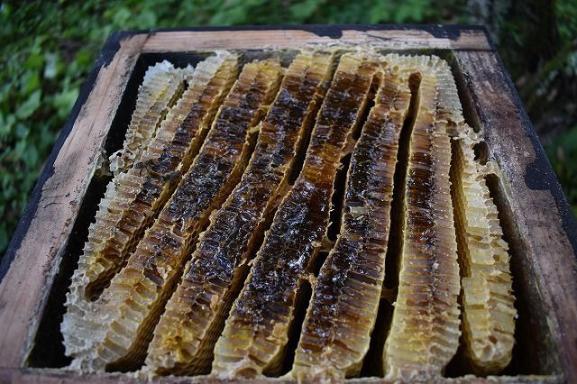 3群の最上段の貯蜜量は2割、5割、2割ほどでしたかね・・・。全部で3ℓ程(4.2kg)になるでしょう。