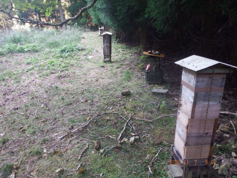 令和7年11月7日 金曜日 標高550mの蜂置き場:全群の目視確認を致しました。