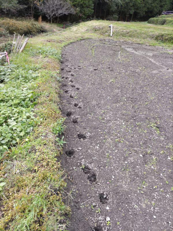 皇帝ダリアやられましたか、残念。鹿の足跡の感じですね、ひずめ。